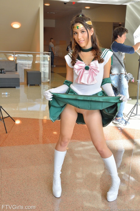 Brunette beauty Melody flashes her shaved snatch & toys her anus in public