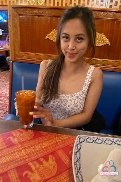 Asian teenie Alexia Anders poses undressed on the beach & spreads her twat up close