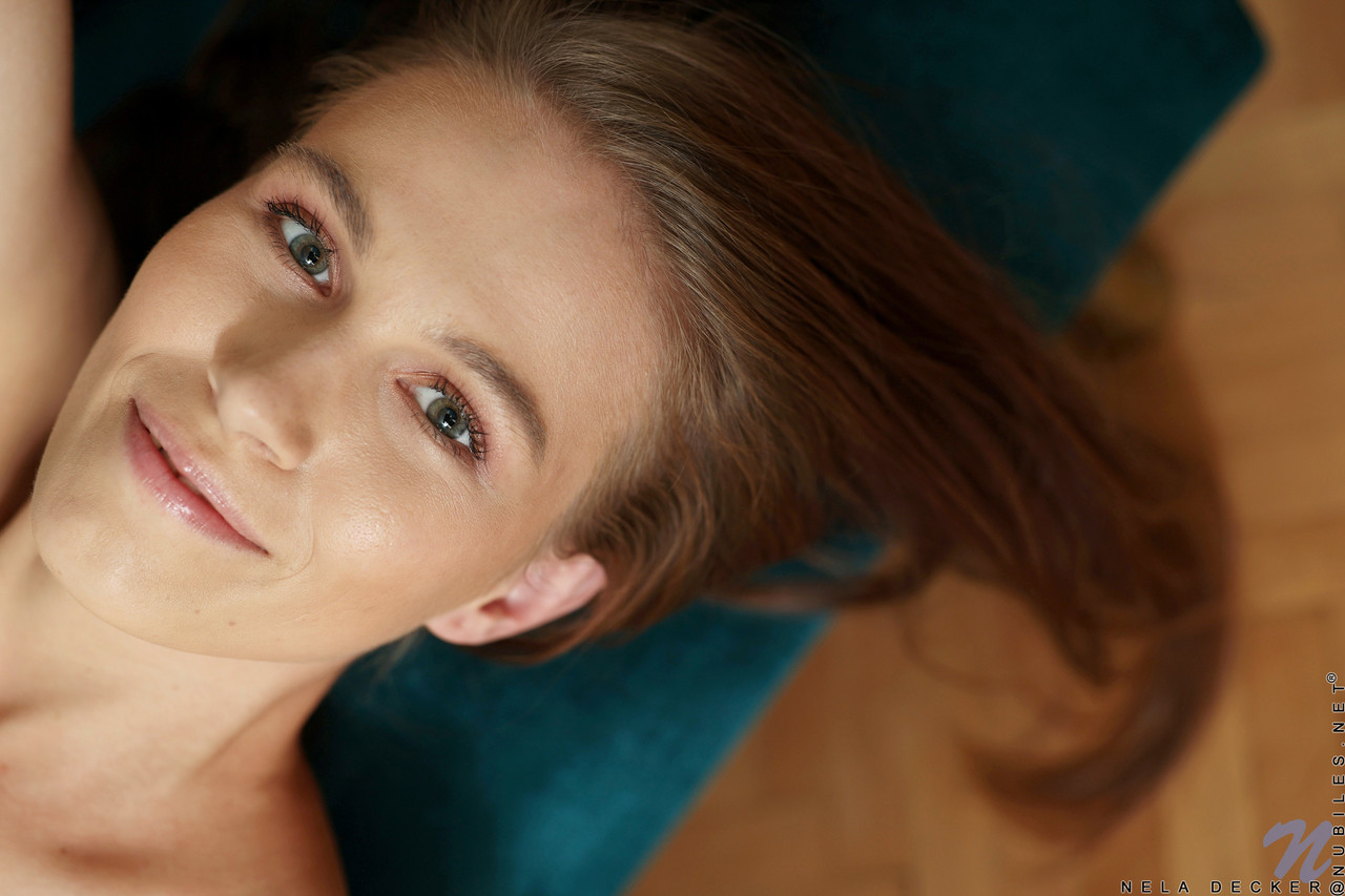 Sexy teen babe Nela Decker spreads her hot twat and grabs her firm booty