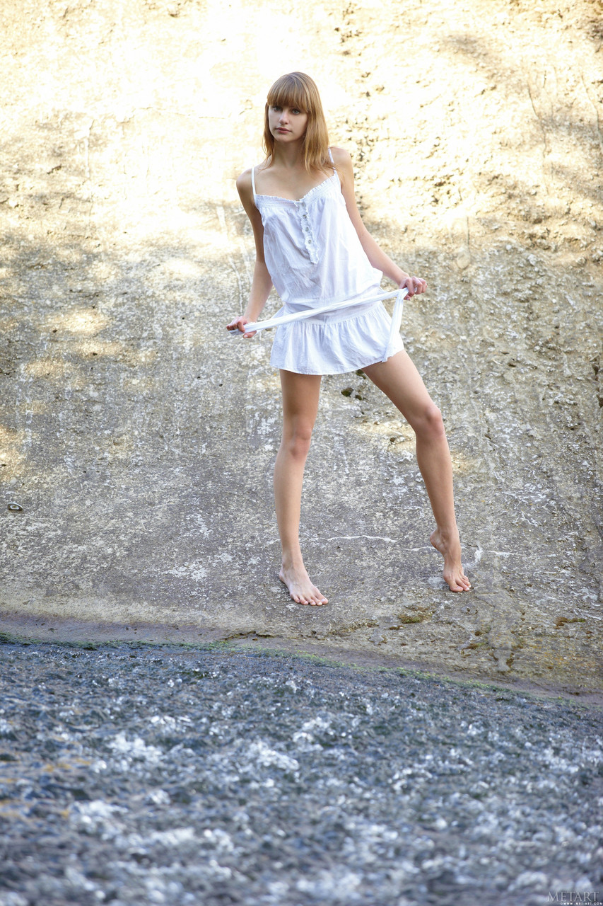 Adorable babe Veda A shows her awesome bush & her little ass outdoors