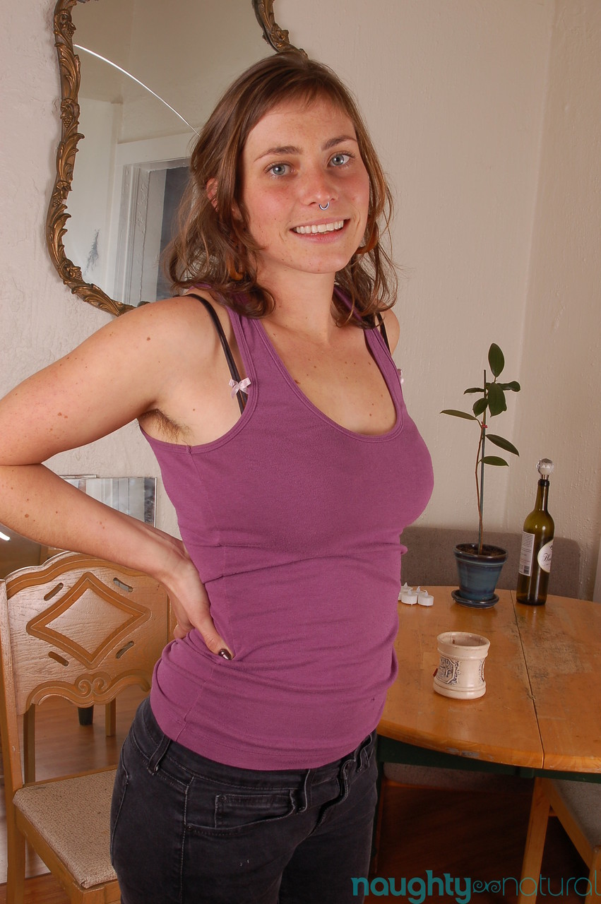 Slutty amateur Tanya unveils her bushy armpits and snatch in a solo striptease