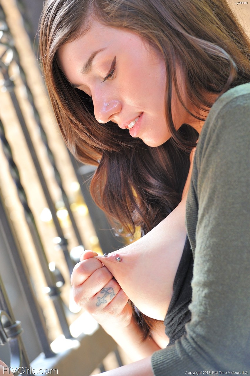 Glamour babe Lyanna stretches her nipples while changing to her yoga outfit
