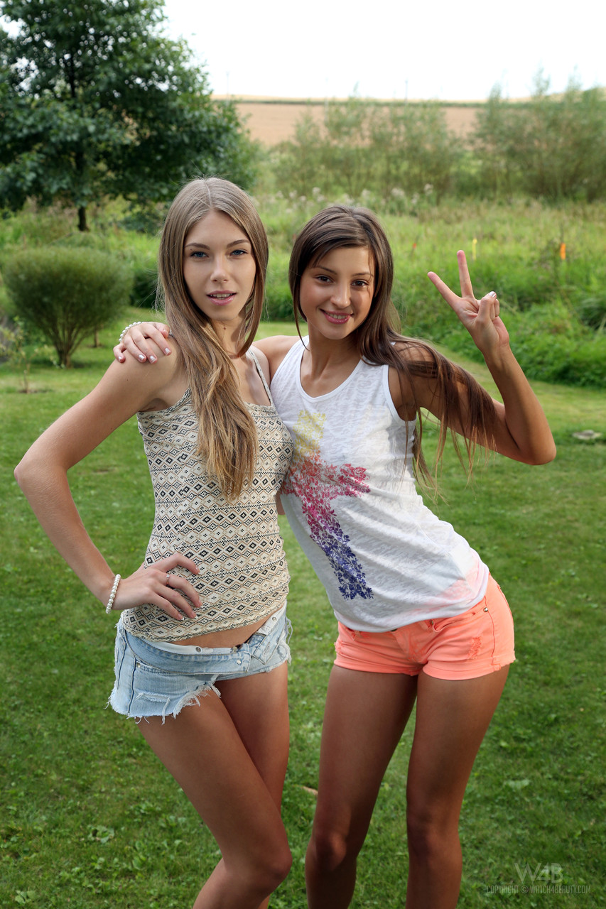 Slutty Maria peeing outdoors while flashing pantyless upskirts with her gf