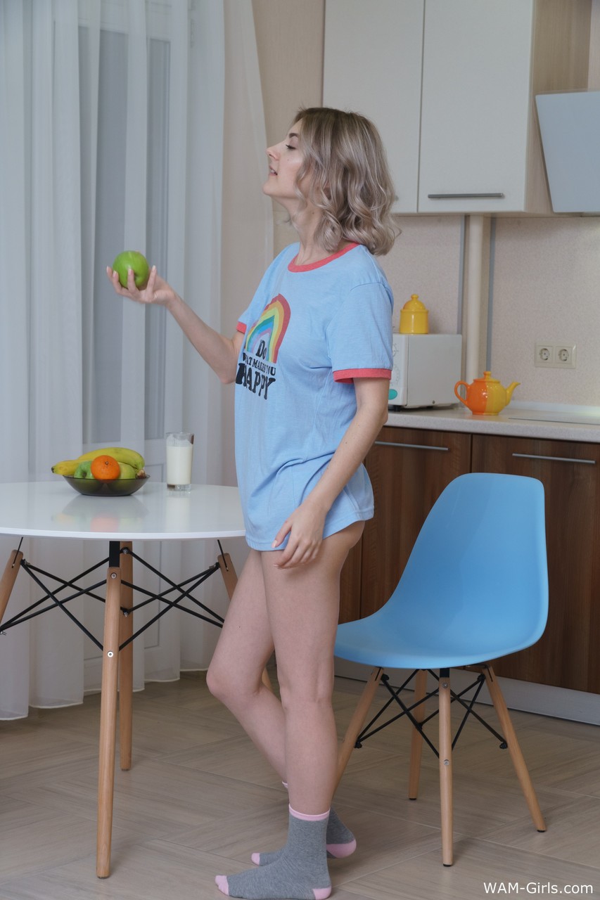 Blondie honey with amazing naturals Eva Elfie gets messy with milk