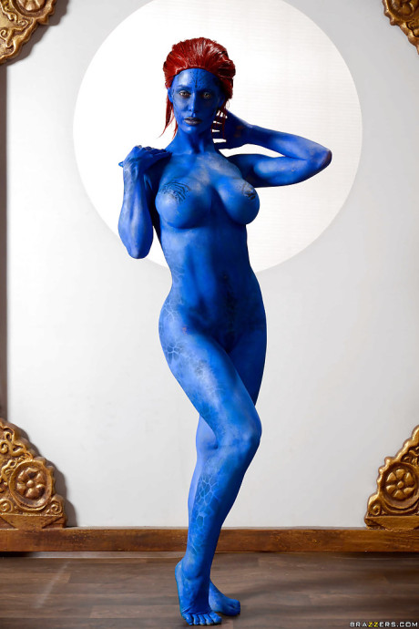 Redhead fetish babe Nicole Aniston flaunting giant nude breasts in body paint