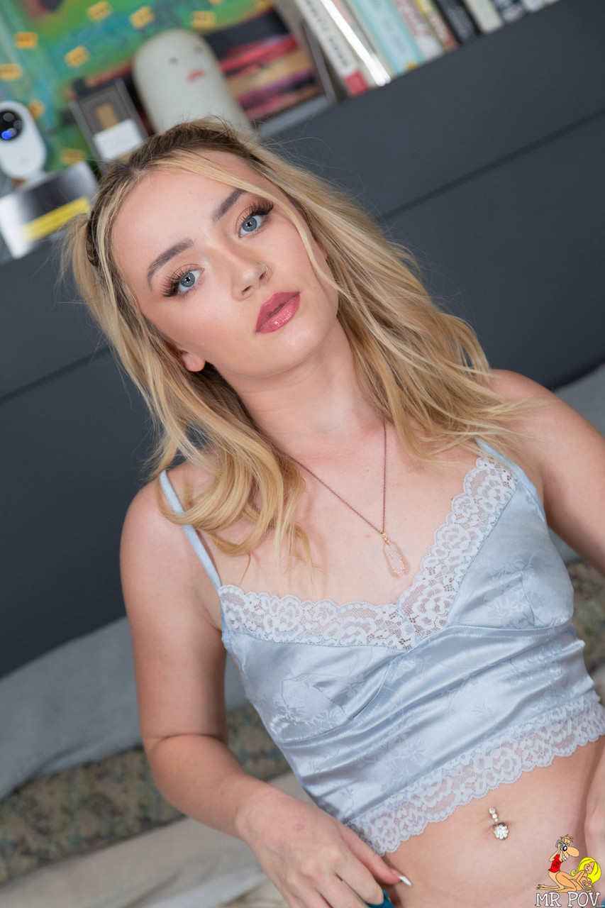 Attractive yellow-haired Maria Kazi takes a selfie prior to engaging in POV sex