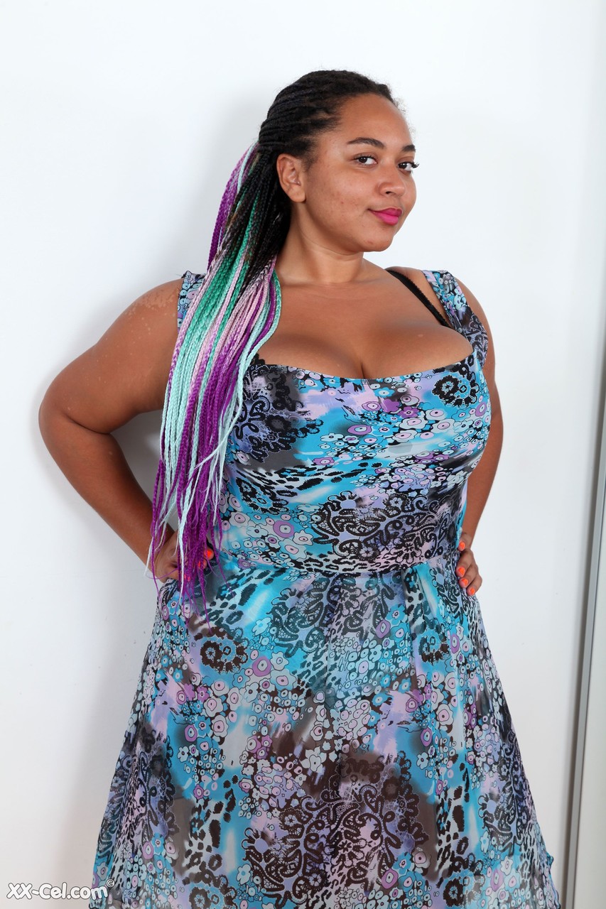 Black fatty Roza flaunts her monster titties while eating a watermelon