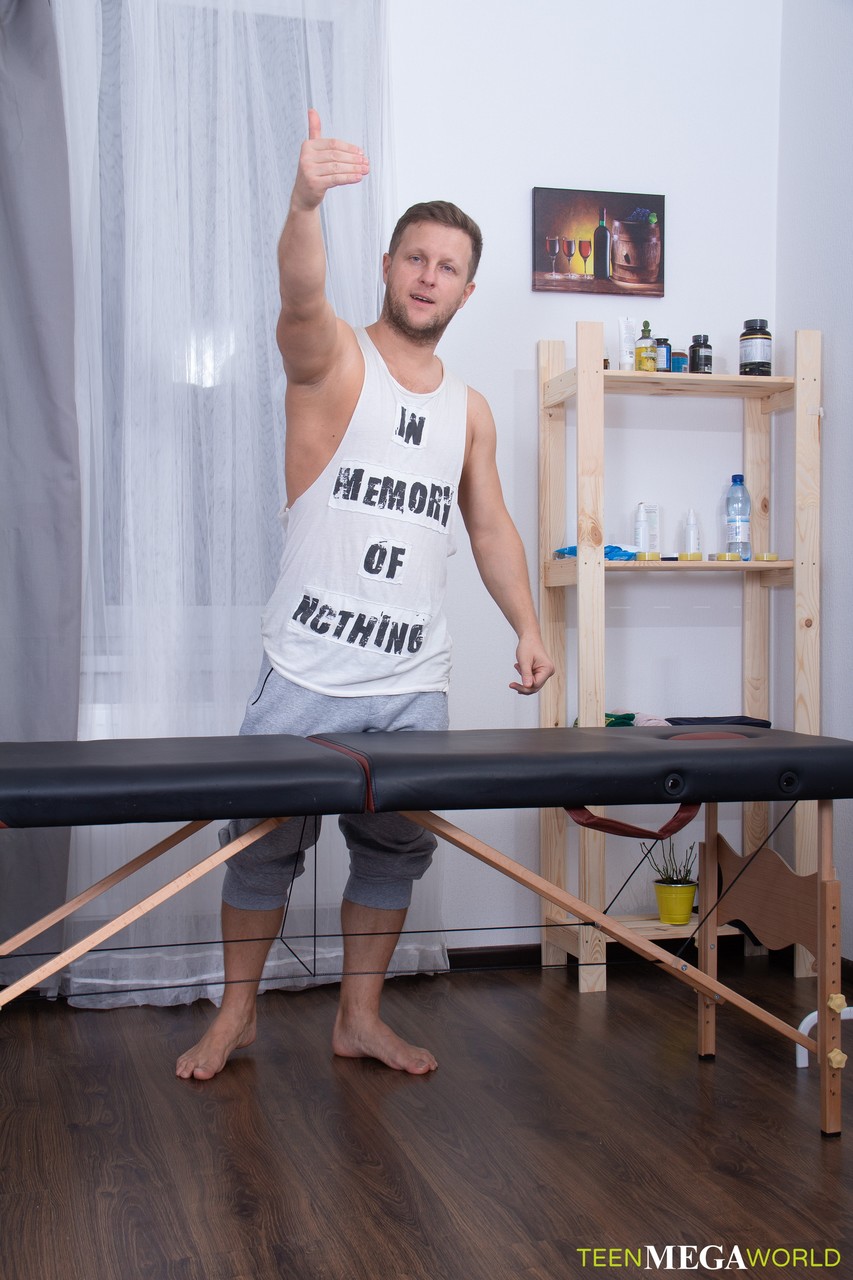 Pretty teenie with a slender figure Roxy Sky gets hammered on a massage table