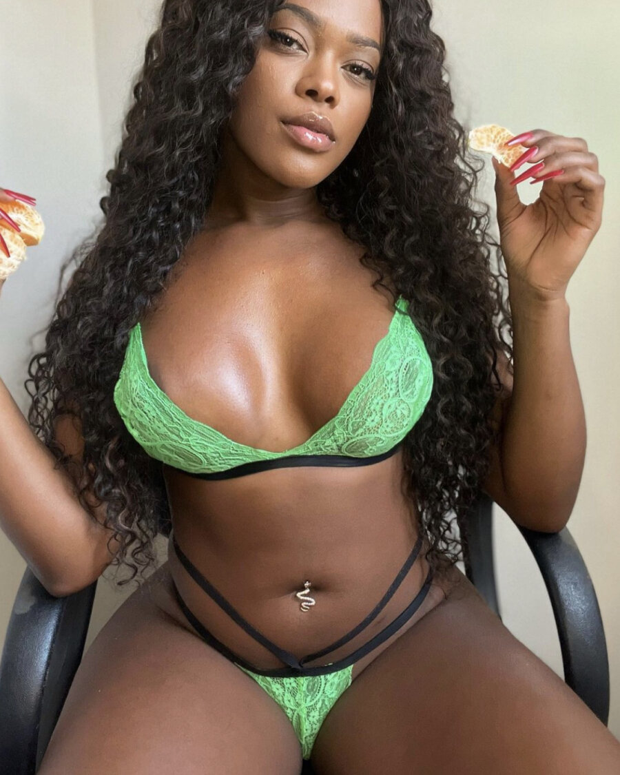 Ravishing black babe shows off her enormous butt & her ravishing titties in undies