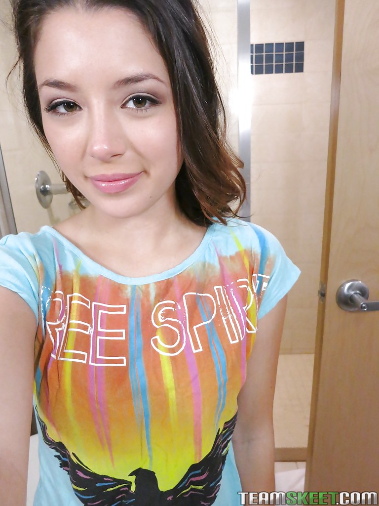 Alluring sweetie revealing her breasts and teasing her honey pot