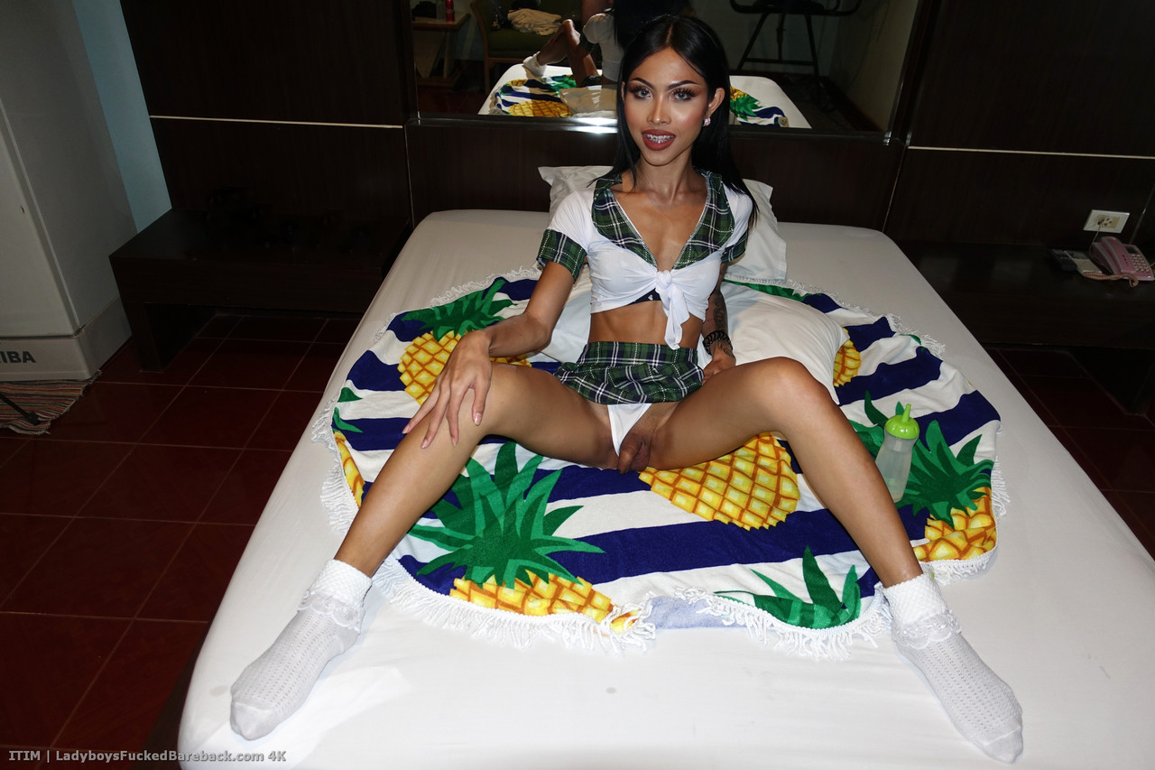 Petite shemale Itim shows off her small booty & her tight anal love hole