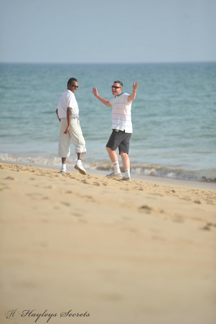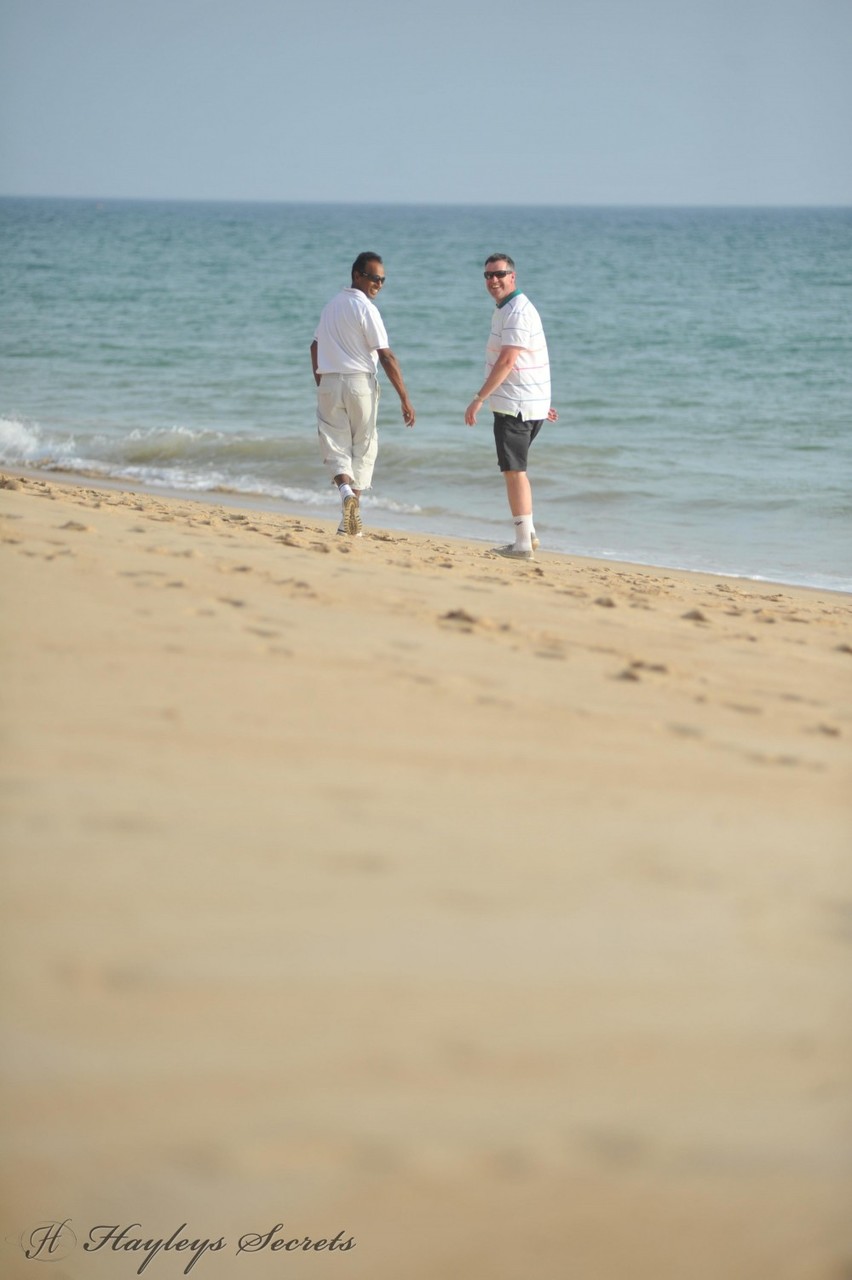 Hayley Marie Coppin and her thick girl go bare-breasted at the beach in sunglasses