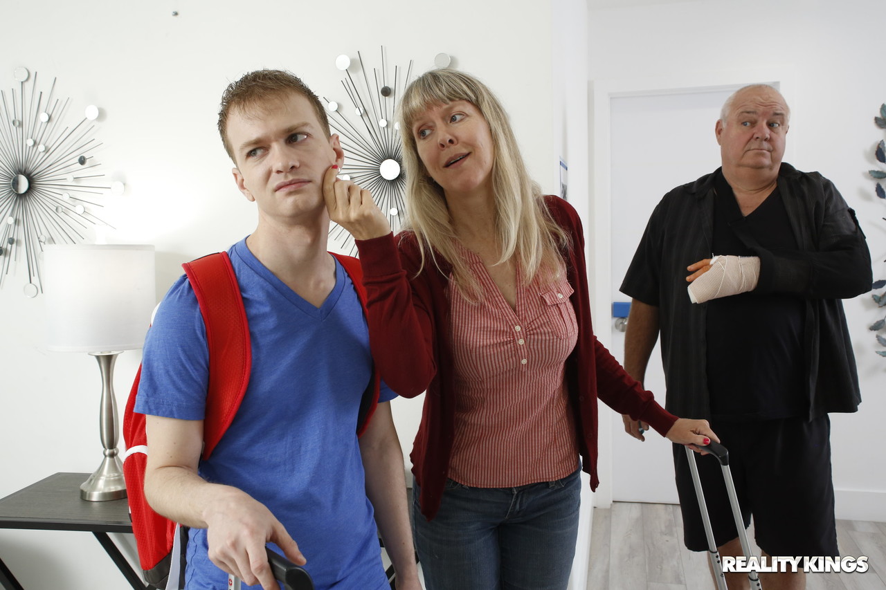 Busty older maid Dee Williams shows her monstrous boobs and gets nailed hardcore