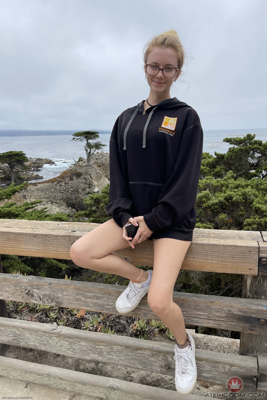Fine nerdy blondie teen Riley Star shows her behind and tasty cunt