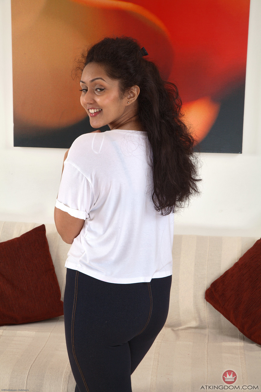 Amateur teen Leghaunveils her chubby figure and hairy snatch in a solo