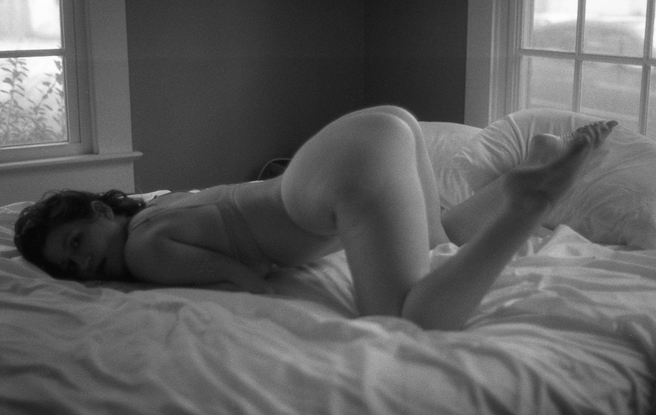 Pregnant woman masturbates with a vibrator in an erotic B&W scene