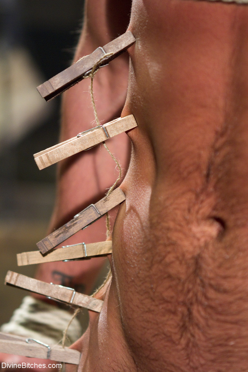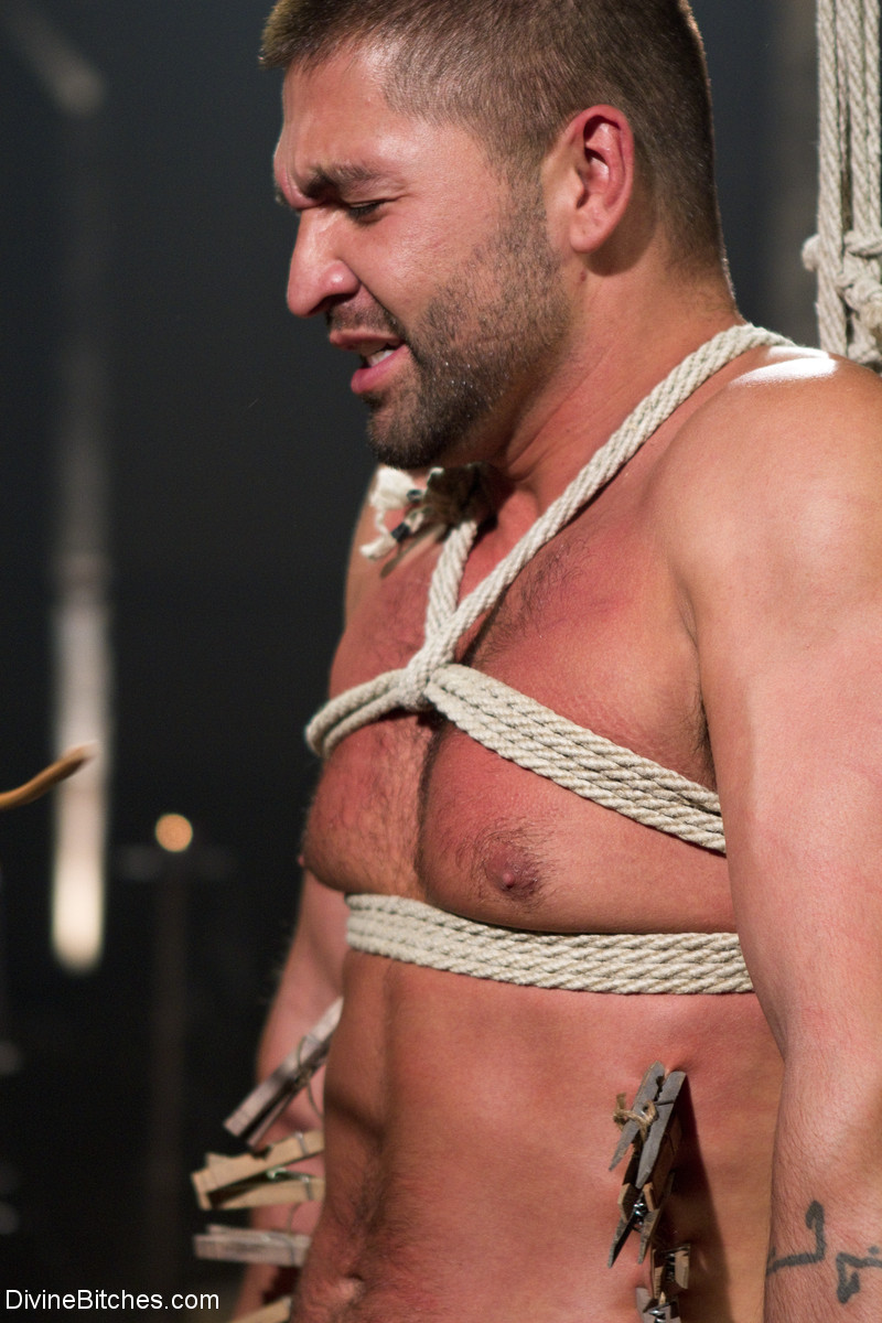 Fine domme in a latex outfit Beretta James torments a masked slave's dick