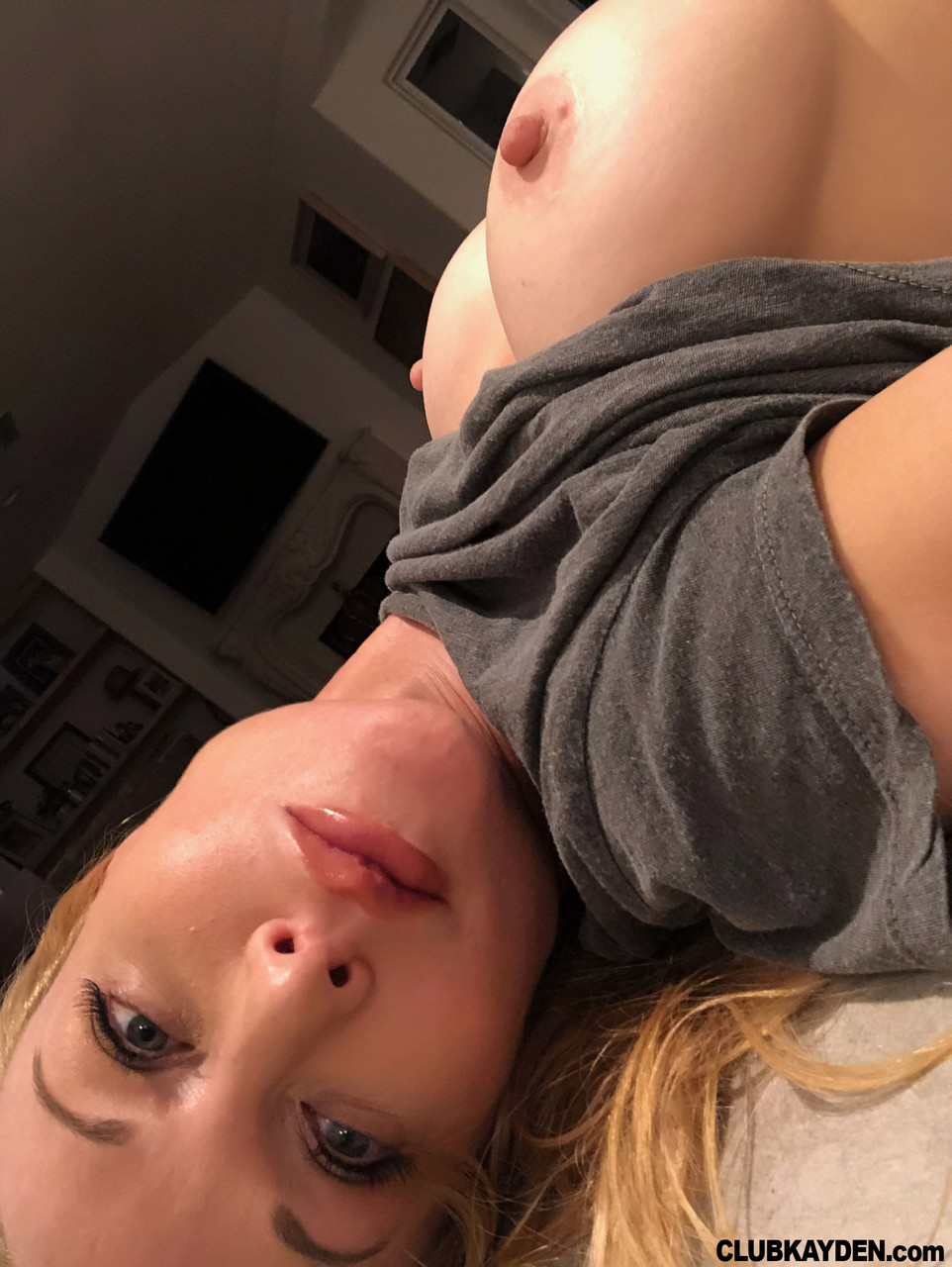 Blondy American with huge boobs Kayden Kross flaunts her long hard nipples