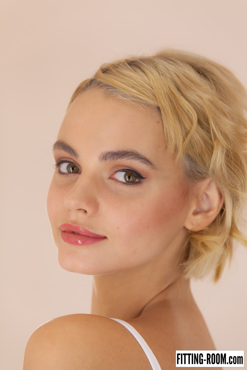 Stunning attractive blondie glamour babe Ariel does a striptease before she masturbates