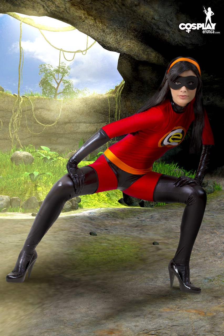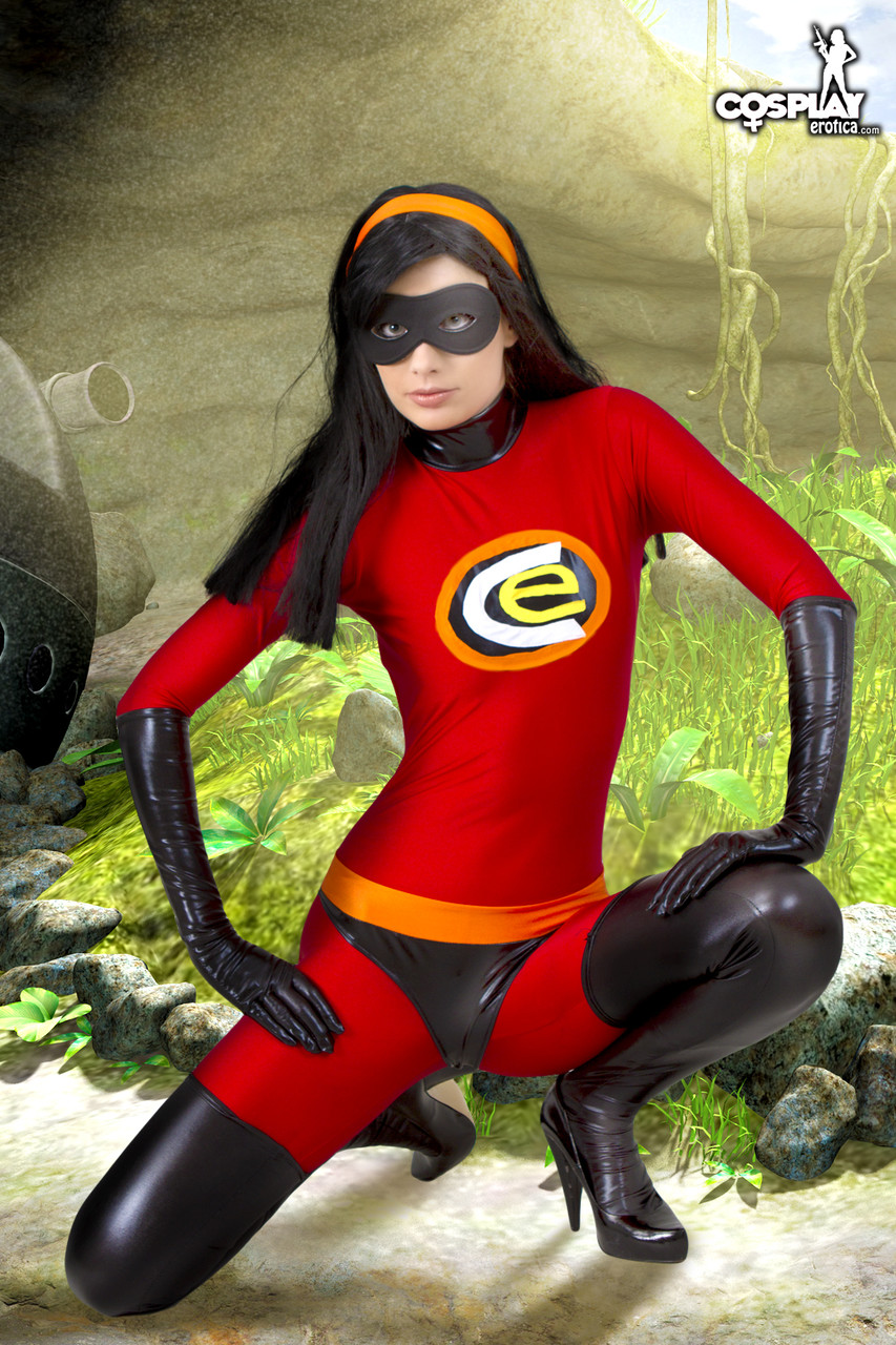 Solo model frees her tiny boobs and landing strip vagina from cosplay attire